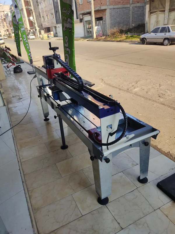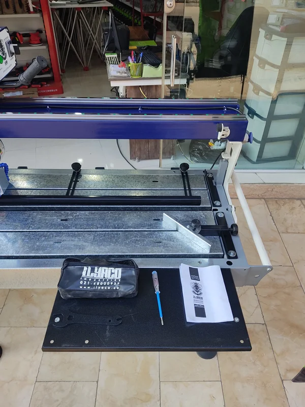 - دستگاه به یک قرار متحرک آهنی مجهز شده که اندازه دقیق برش را تنظیم میکند